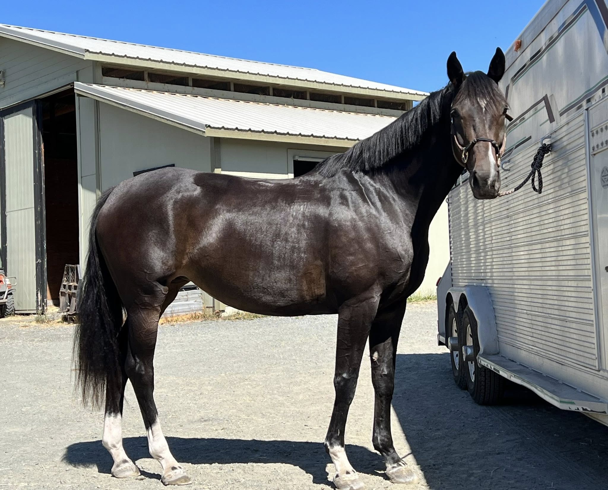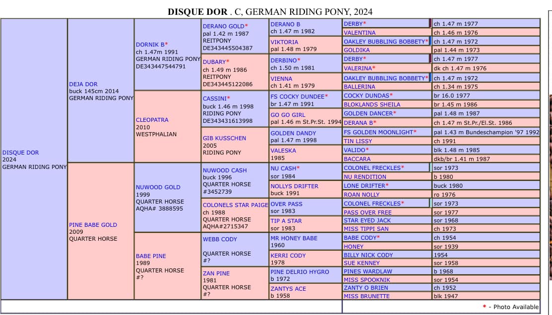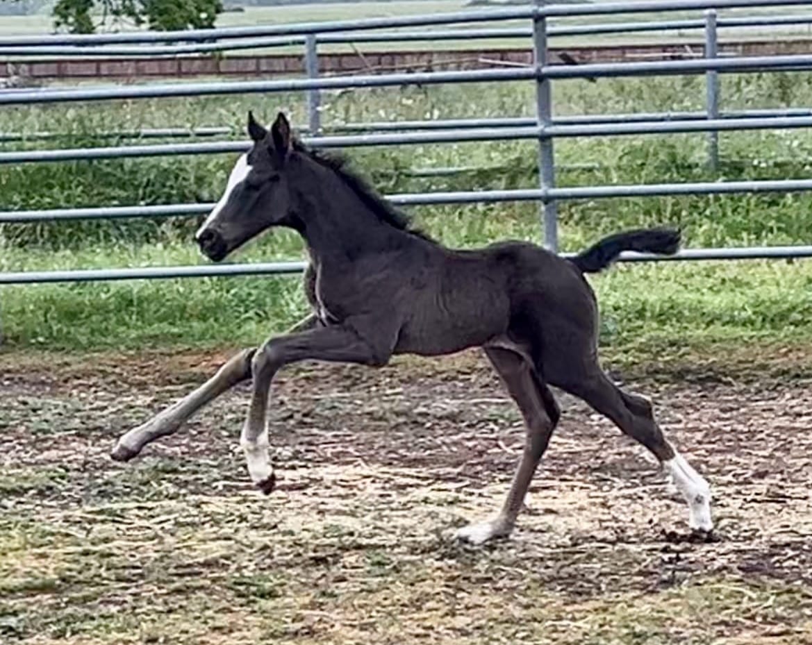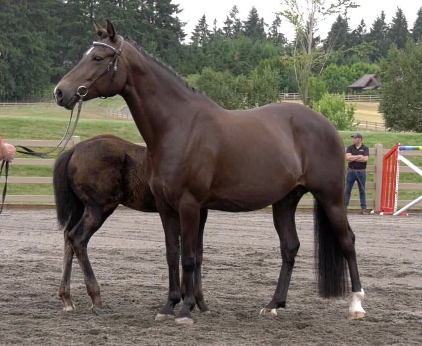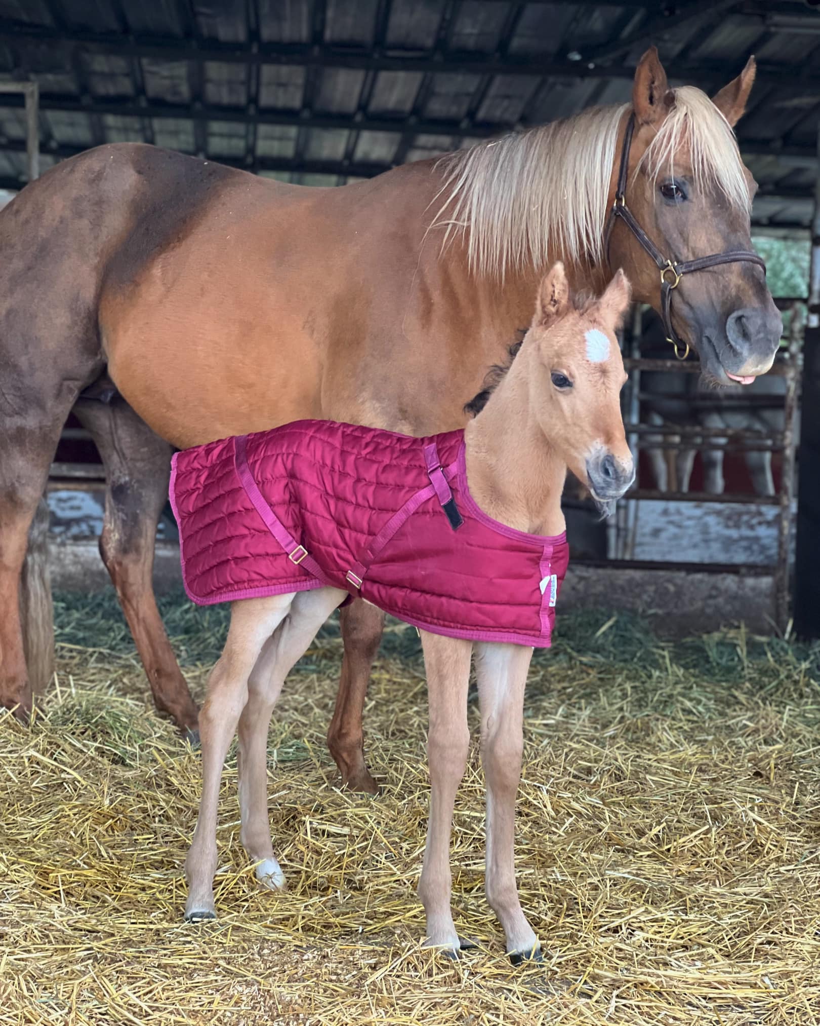 Disco is a bay dun colt born April 2nd, 2024. His sire is German riding pony Deja D’or, showing 4th level dressage with +70% scores. His dam is Mocha, an AQHA palomino quarter horse mare, who has shown 2nd level dressage scoring 7s at all three gaits.